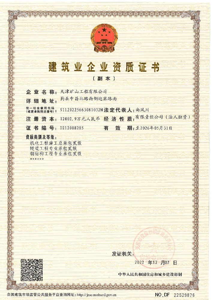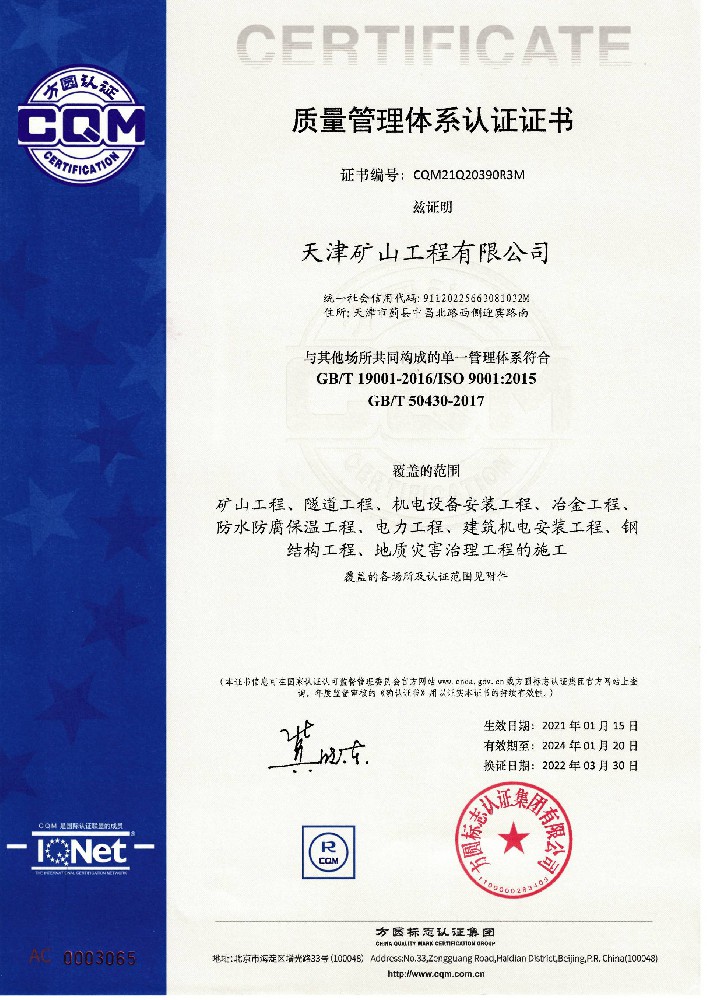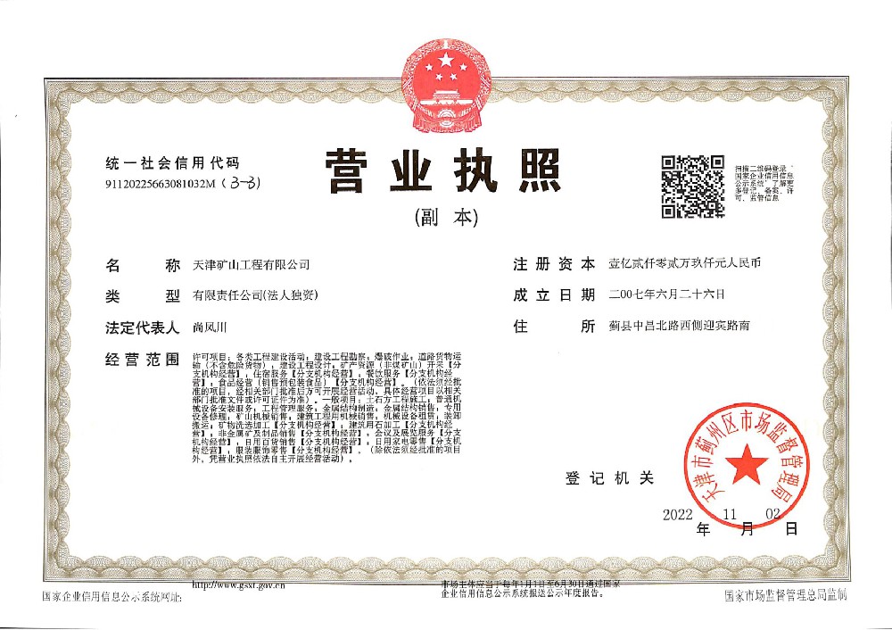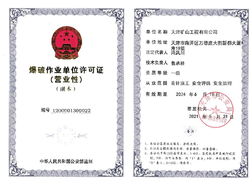 天津礦山工程有限公司(以下簡稱公司)始建于1965年,隸屬中國建材集團有限公司,是從事礦山總承包、礦山開采運營、礦山設計與咨詢、土石方爆破、生態(tài)恢復治理、鋼結構制作安裝、機電設備安裝以及工程測量的專業(yè)化礦山施工企業(yè)和礦山開采運營總承包服務商。具備礦山總承包和爆破雙一級資質。 公司始建于1965年,總部位于天津市···